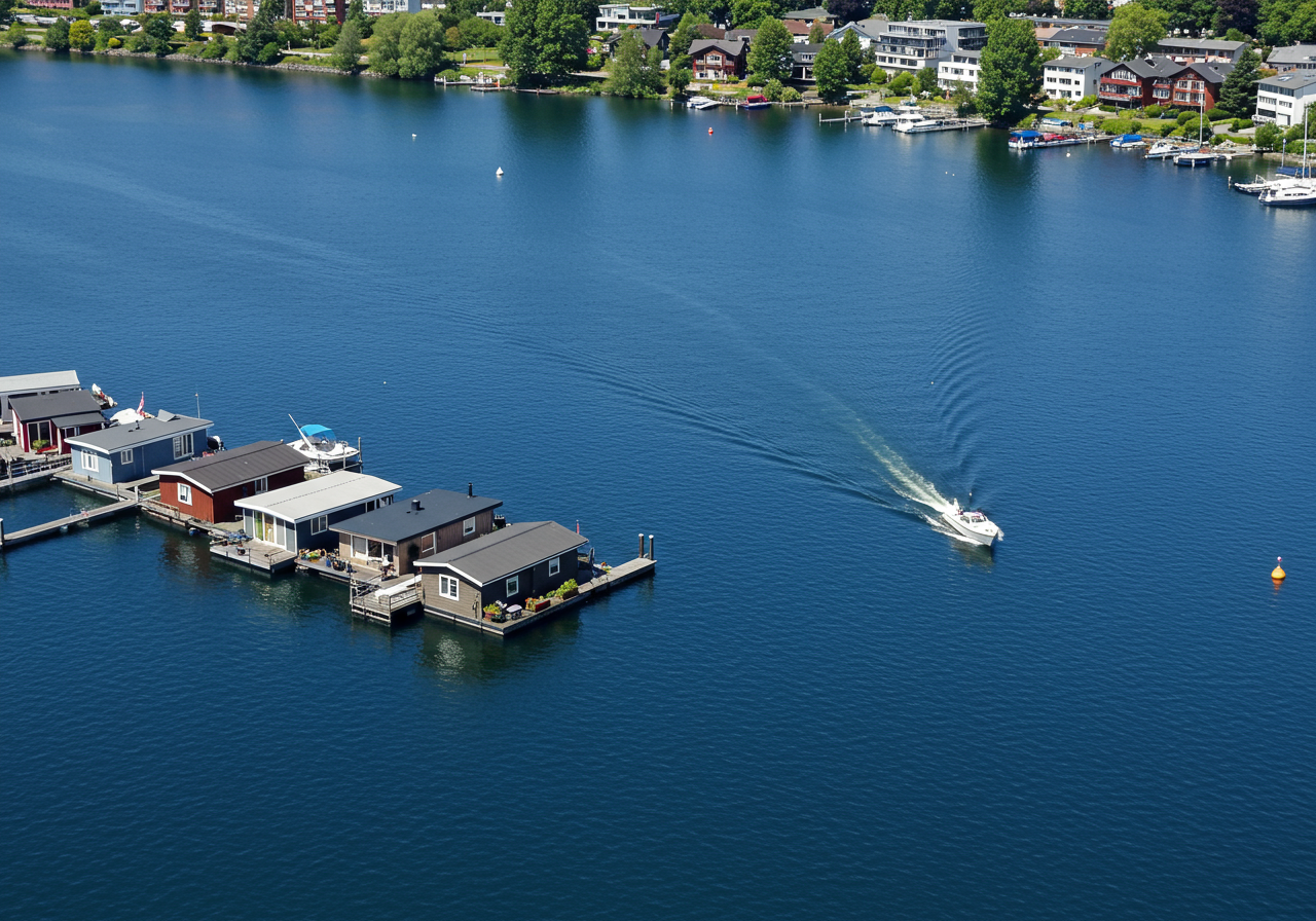 At the peak, the Seattle floating homes community was as large as two thousand houseboats lining the shores of the city in various locations which even included Madison Park in Lake Washington. The residents of the surrounding Seattle neighborhoods reportedly snubbed them and looked down at this way of life. They apparently felt that it was beneath their standards and so began the struggle of Seattle houseboats to Stay Afloat In Seattle™. Today there are around 520 Seattle floating homes and probably another two or three hundred liveaboards that are officially newly categorized as Seattle Floating On-Water Residences. The latest Seattle floating home dock was a new construction floating home development called Stillwater Landing - complete with floating homes with basements. Very specific requirements need to be in place in order to develop new construction Seattle floating homes, so it is next to impossible to do so.
