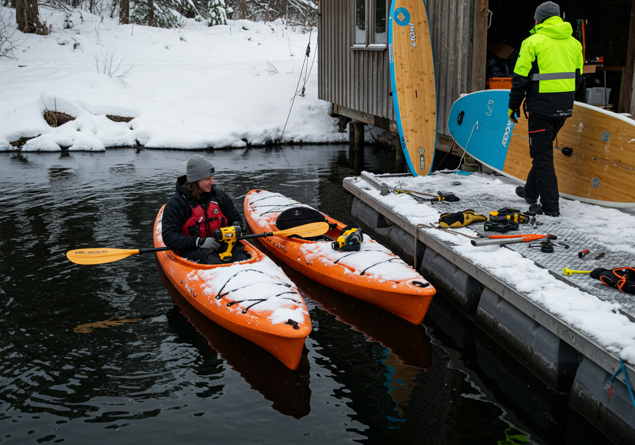 Creative work floats - If you don't have a work float on your dock, be creative. Divers regularly will use a SUP or kayak to work on water lines along houses that could not otherwise be reached. We houseboaters are a creative bunch so be creative! But don't fall in!
